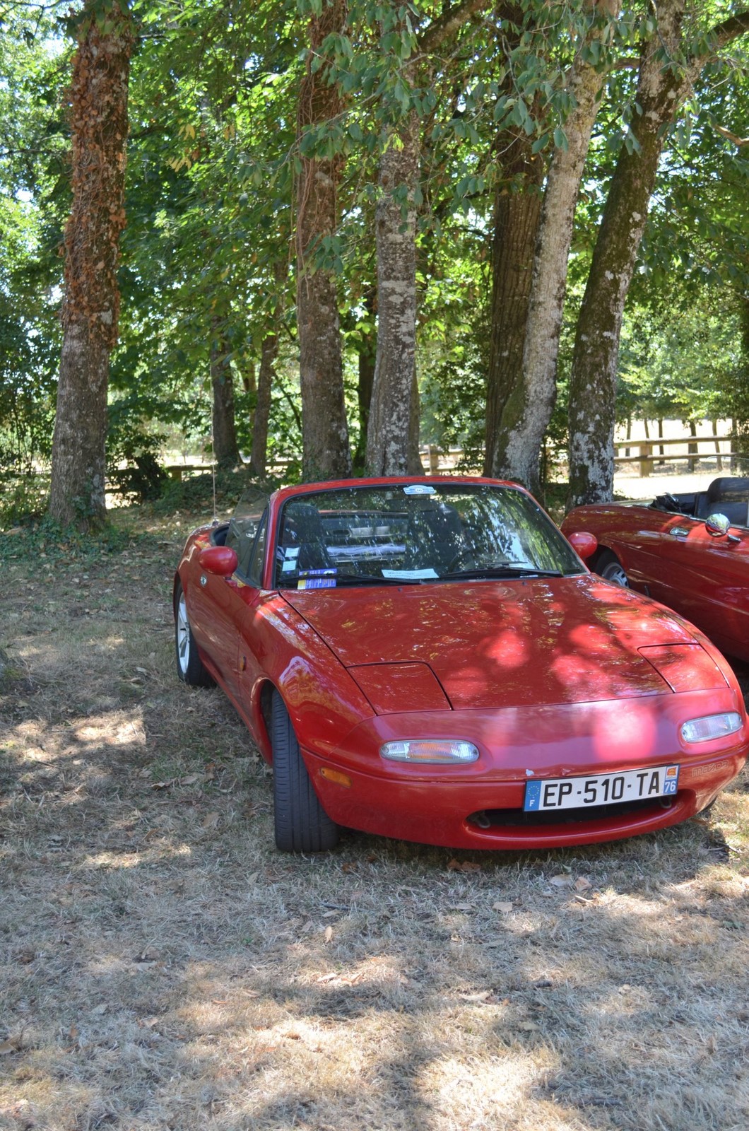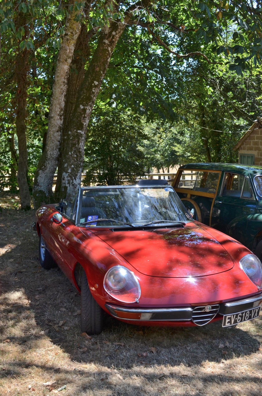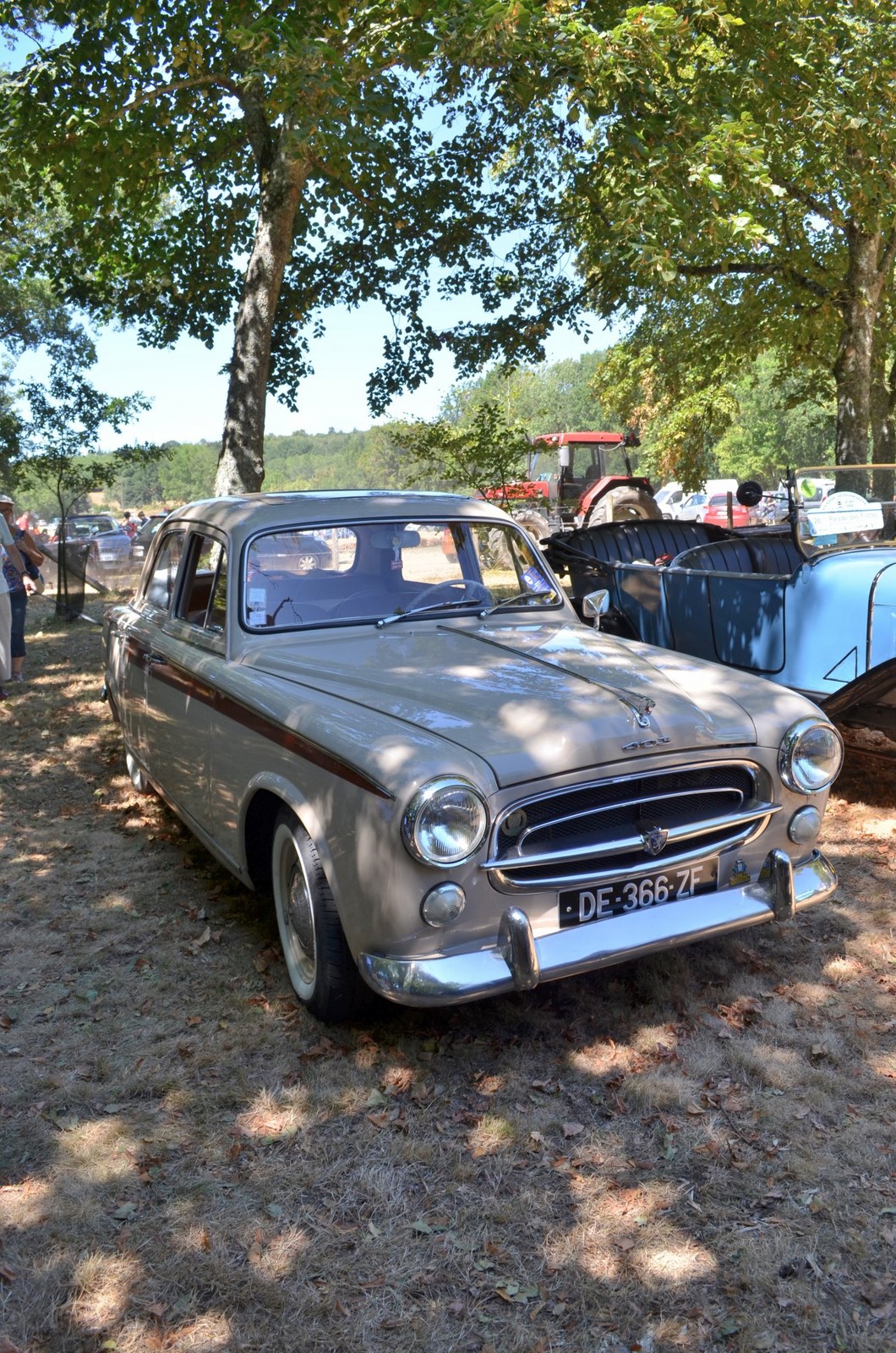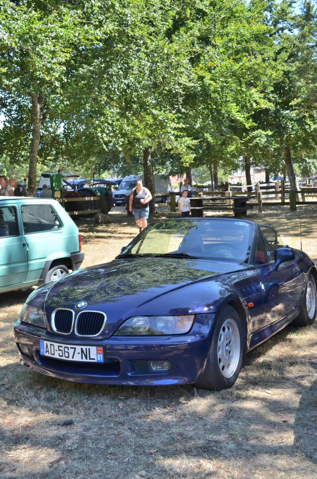 Journée agréable avec du soleil et beaucoup d'ombre autour du lieu d'exposition des autos.