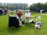 Beaucoup d'estivants sous le soleil radieux, très admiratifs des voitures.