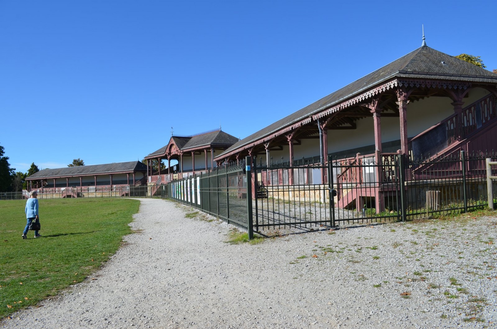 Avec nos voitures, via des quartiers extérieurs nous avons rejoint Le TRISKELL pour déjeuner. Après lequel, encore avec nos autos, nous avons via St Langis marqué un arrêt aux tribunes classées de l'hippodrome.