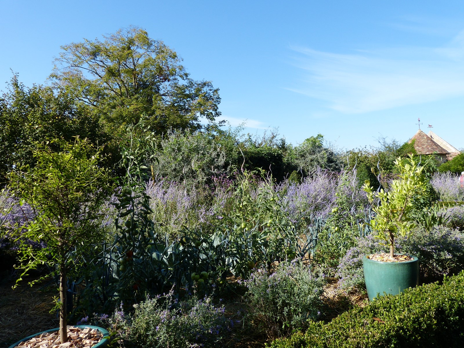Entouré de champs et bordé d'une rivière et de bois, le jardin reprends les thèmes et les grandes lignes de l'histoire des jardins.