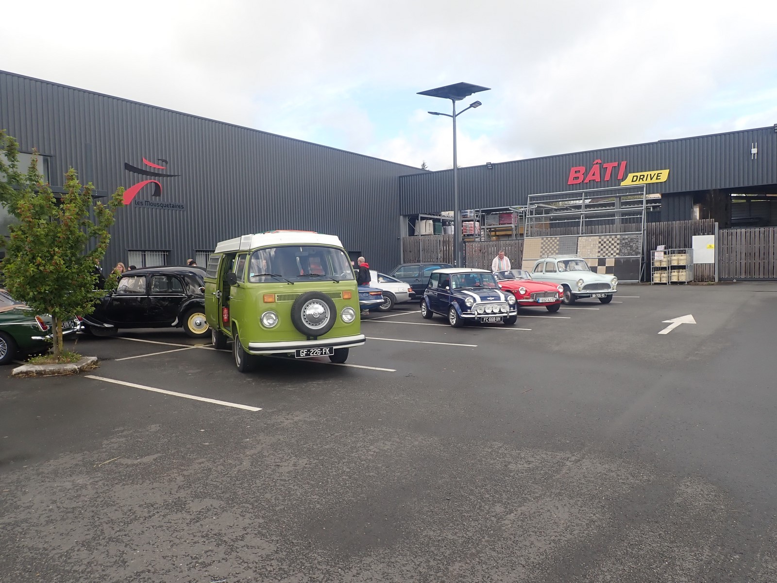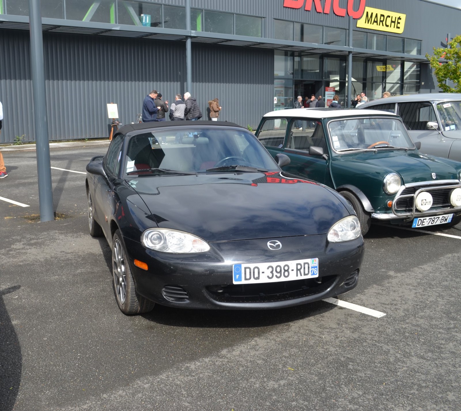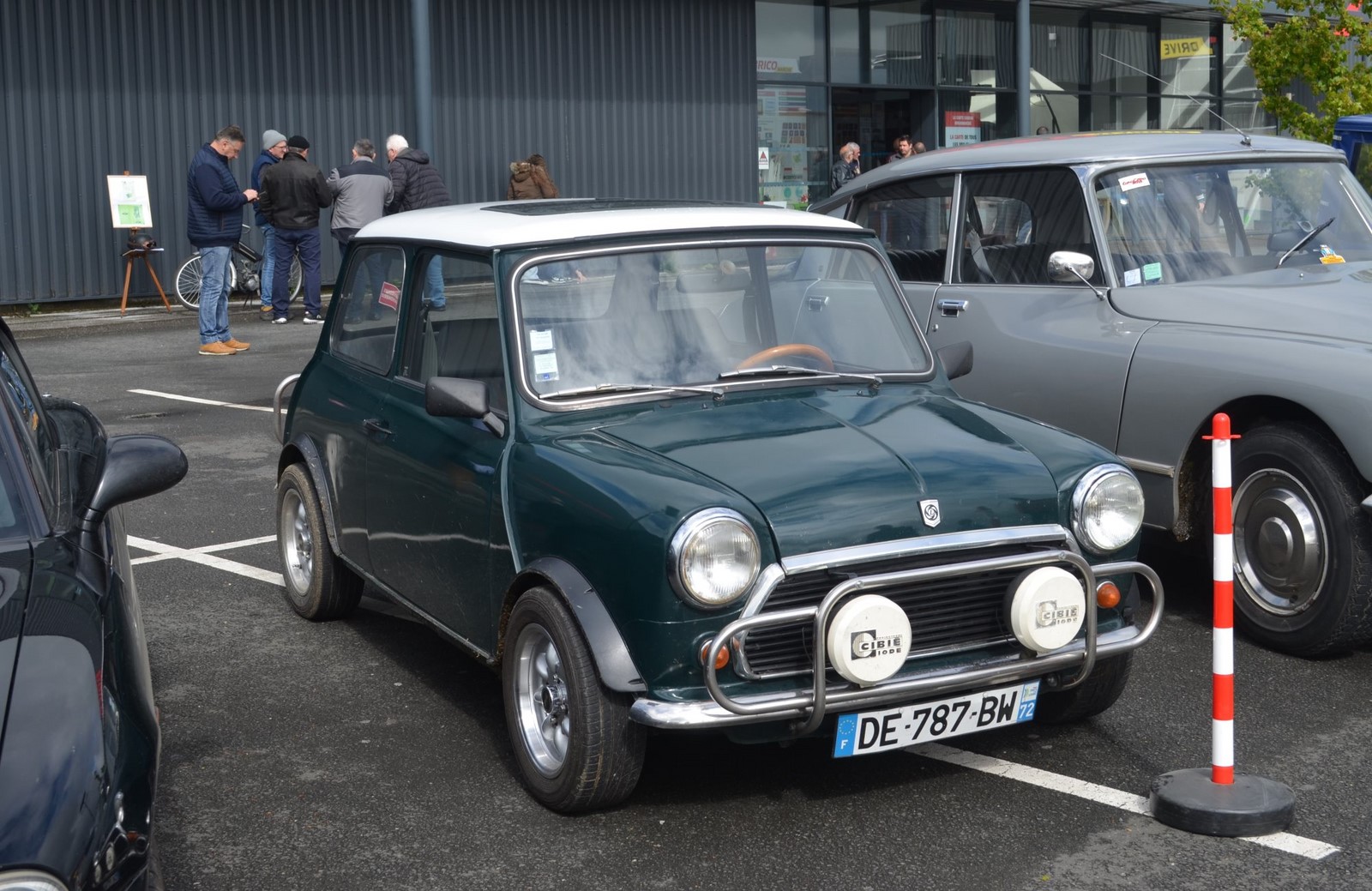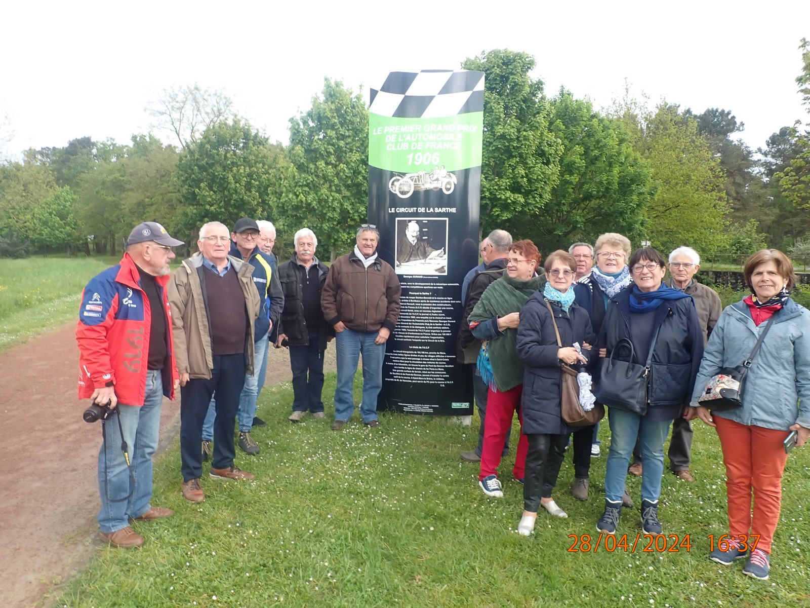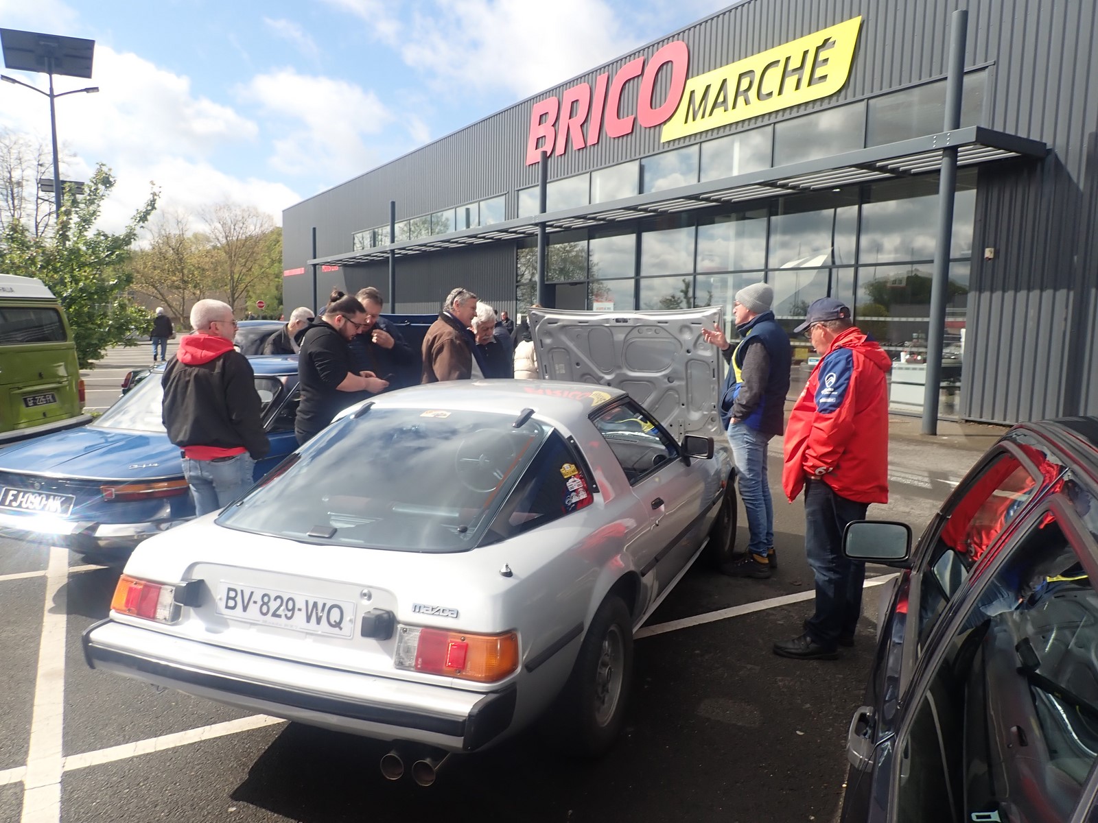 De ce pinacle dominant, nous descendons par la route de la Vallée d’Enfer, mais nous n’avons pas de frayeur, vitesse limitée par la loi à 40 km/h, les températures ne sont ni volcaniques ni ensoleillées et aucun besoin de décapoter. Nous passons devant l’Etang de Guibert, et les ruines de l’Abbaye de Perseigne, puis à Saint-Rémy de Val, Vezot, Panon, Mont Renault, Pizeux, Commerveil et finalement arrêt au magasin Brico-Marché pour une rencontre attendue avec l’AMRM – Auto Motor Rétro Mamers, leur président M. David Maudet et les membres. Un café est servi et nous échangeons entre nous.