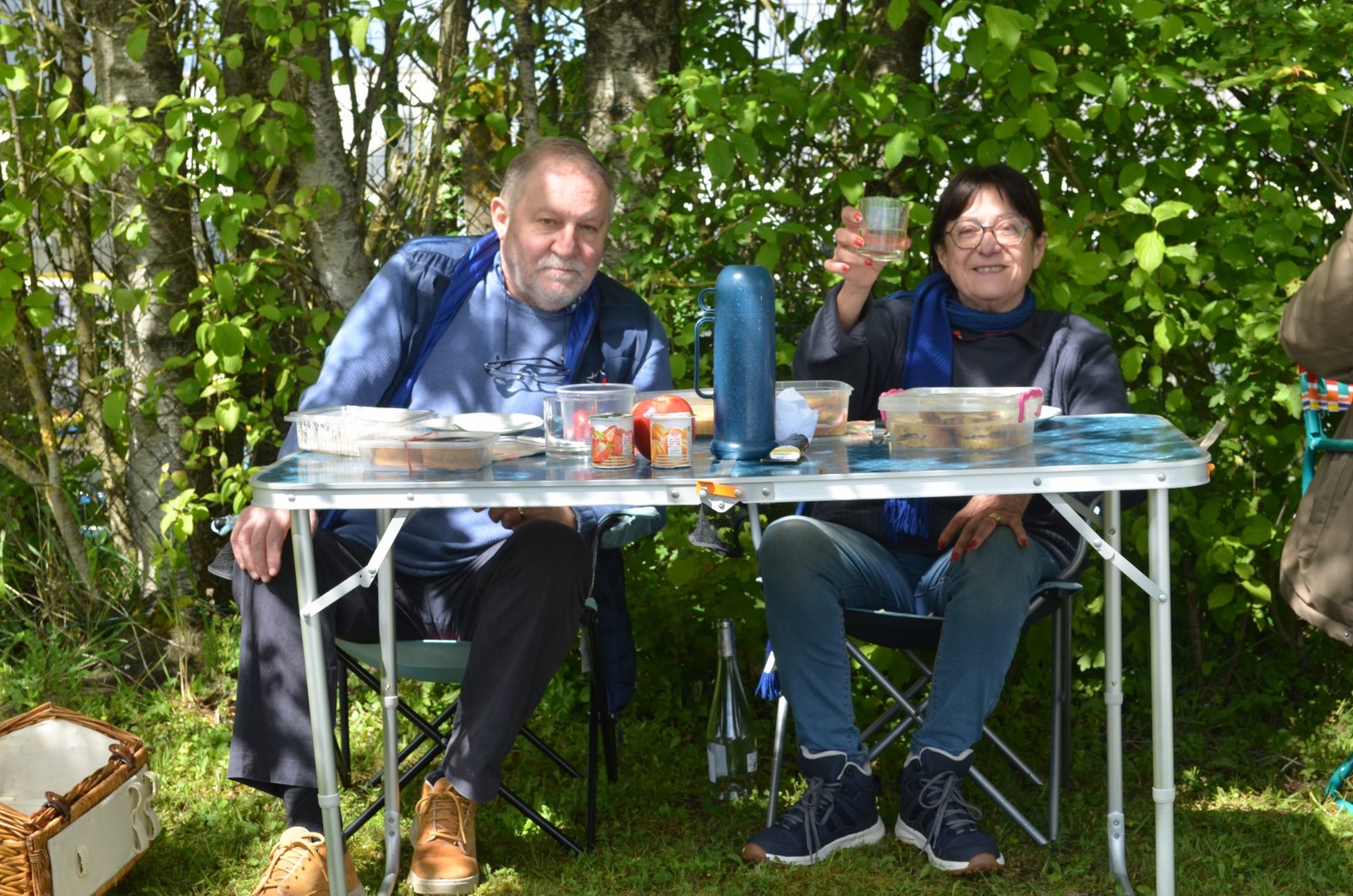 Puis au deuxième rond-point dans la ZA de la Taille, un portail est grand ouvert pour nous accueillir. Sous un soleil bien attendu un petit apéritif en toute modération et puis un pique nique.